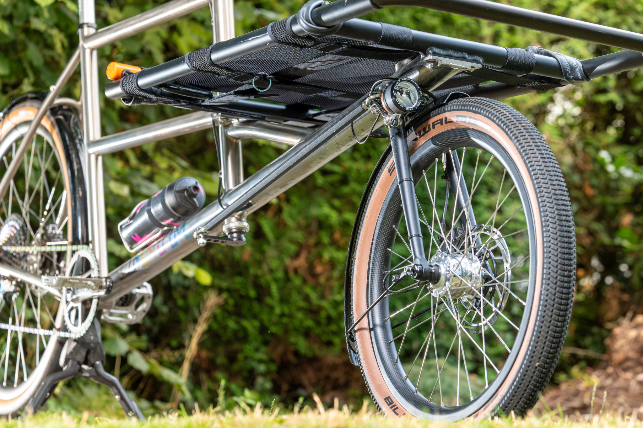 ← → Omnium Super CustomMany parts on this dream cargobike are unique, the frame was anodized at the customer’s request, the headlight, rear light bracket and the spacers were anodized by the customer himself. we only had to take care of the assembly of the bike. Typ: Cargo Bike Rahmen: Omnium Schaltgruppe: SRAM Naben: King Cage Lichtanlage: SON Nabendynamo: SON Steuersatz: Chris King Vorbau: Thomson Alle Velos Zu allen unseren Custom & Neurädern Ansehen Angebote Service, Revisionen, Reperaturen, Beratung & mehr Ansehen