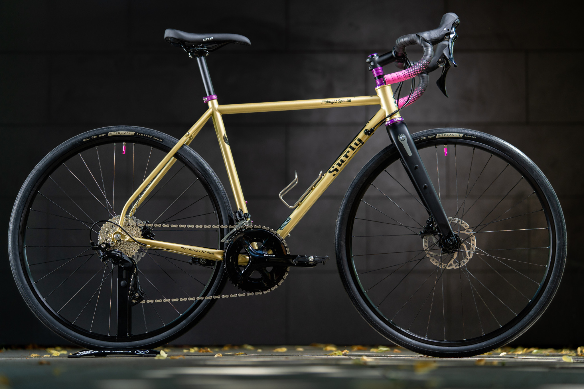 Yesterday surly introduced us to the new midnight special, and today it’s already with us. the midnight special has a new color (Fool “s Gold) the groupset has also changed, now a shimano 105 12 speed is installed, and the wheels have also become bigger, from 650b to 700c.